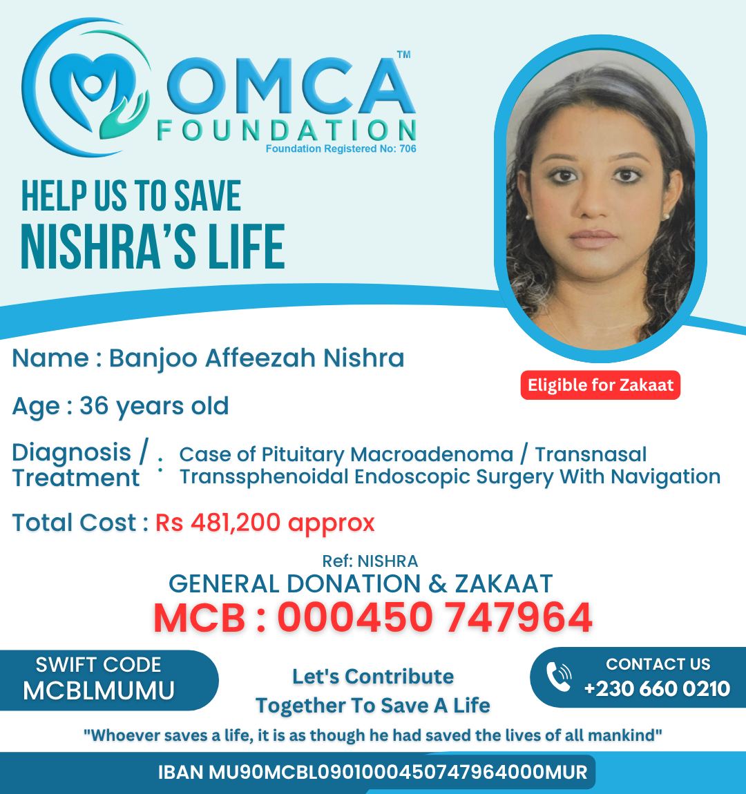 Banjoo Affeezah Nishra, 36 years old, urgently needs to travel to Signature Hospital, Delhi for life-saving medical treatment.